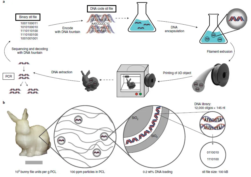 DNA Êý×ÖÊý¾Ý´æ´¢Ïà¹ØÖ÷Òª½á¹ûµÄʱ¼äÏߣ¨1995¡«2018£© ¹þ·ð´óѧµÄÑо¿Ð¡×é½ÓÄÉ CRISPR DNA ±à¼¼¼Êõ½«ÈËÊÖµÄͼÏñ¼Í¼µ½´ó³¦¸Ë¾úµÄ»ùÒò×éÖУ¬¶ÁÈ¡µÄ׼ȷÂÊÁè¼Ý 90%¡£ÈðÊ¿µÄÑо¿ÈËÔ±Éè¼Æ³öÁËÒ»ÖÖ¡°DNA-of-things¡±£¨DoT£©´æ´¢¼Ü¹¹À´Éú²ú¾ßÓв»¿É±äÄÚ´æµÄÖÊÁÏ¡£ÔÚ DoT ¿ò¼ÜÖУ¬DNA ·Ö×ӼͼÊý¾Ý£¬È»ºóÕâЩ·Ö×Ó±»·â×°ÔÚÄÉÃ×¶þÑõ»¯¹èÄÉÃ×ÖéÖУ¬ÕâЩ¶þÑõ»¯¹èÖéÈںϵ½ÖÖÖÖÖÊÁÏÖУ¬ÓÃÓÚ´òÓ¡»òÖýÔìÈκÎÐÎ×´µÄÎïÌå¡£